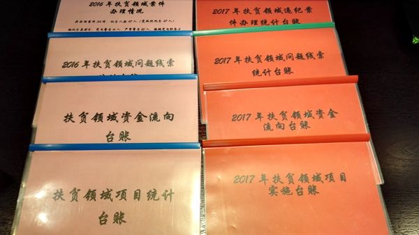 在吕梁市临县纪委,工作人员向我们展示了他们的“四本账”:项目主管单位建立项目实施台账、财政部门资金流向台账、问题线索台账、扶贫领域案件办理台账。